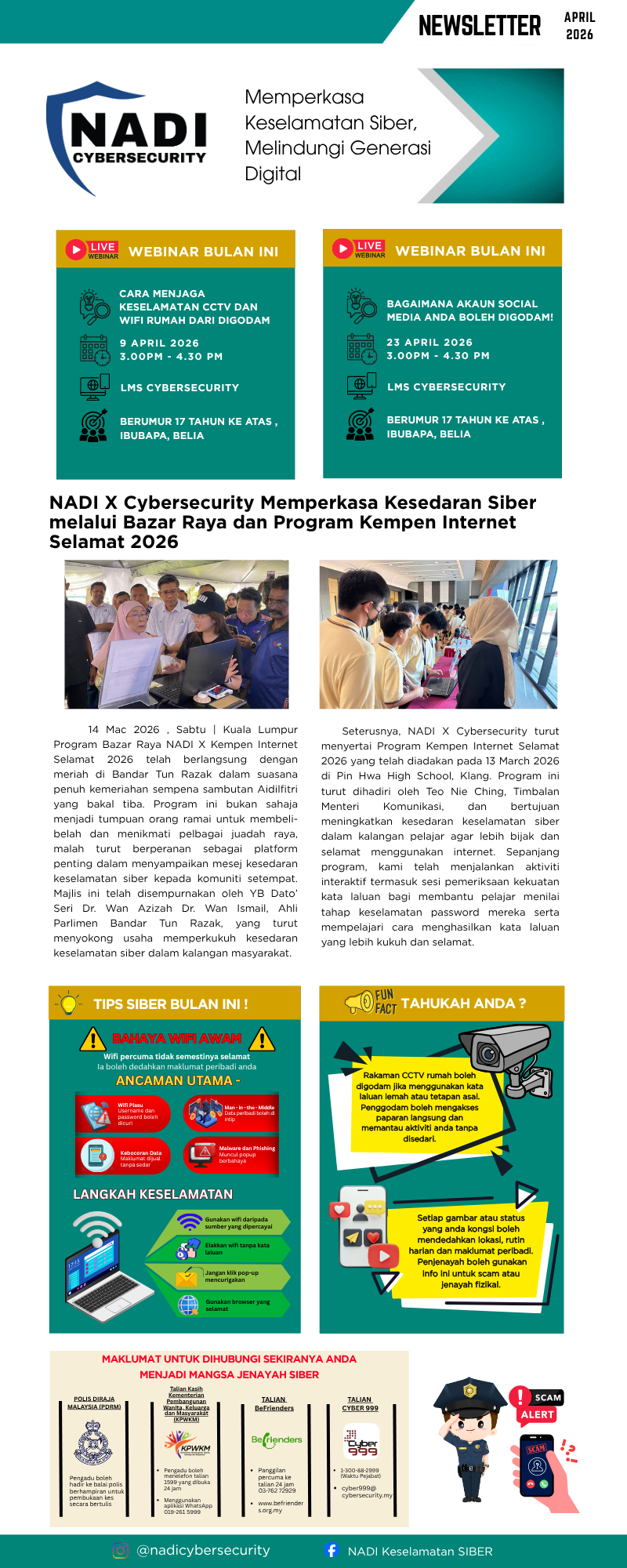 📣 [WEBINAR NADI x CYBERSECURITY]ANCAMAN SIBER DALAM DUNIA AI! 📅 20 November 2025 (Khamis)🕒 3:00 PM – 4:30 PM💻 Platform: Zoom🔗 Pautan Pendaftaran: cybersecurity.nadi.my (untuk ahli NADI sahaja) 📌 Apa yang akan dipelajari?Webinar ini memberikan penerangan menyeluruh tentang bagaimana kecerdasan […]