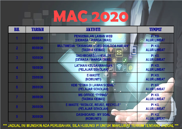 JADUAL LATIHAN & AKTIVITI MAC 2020