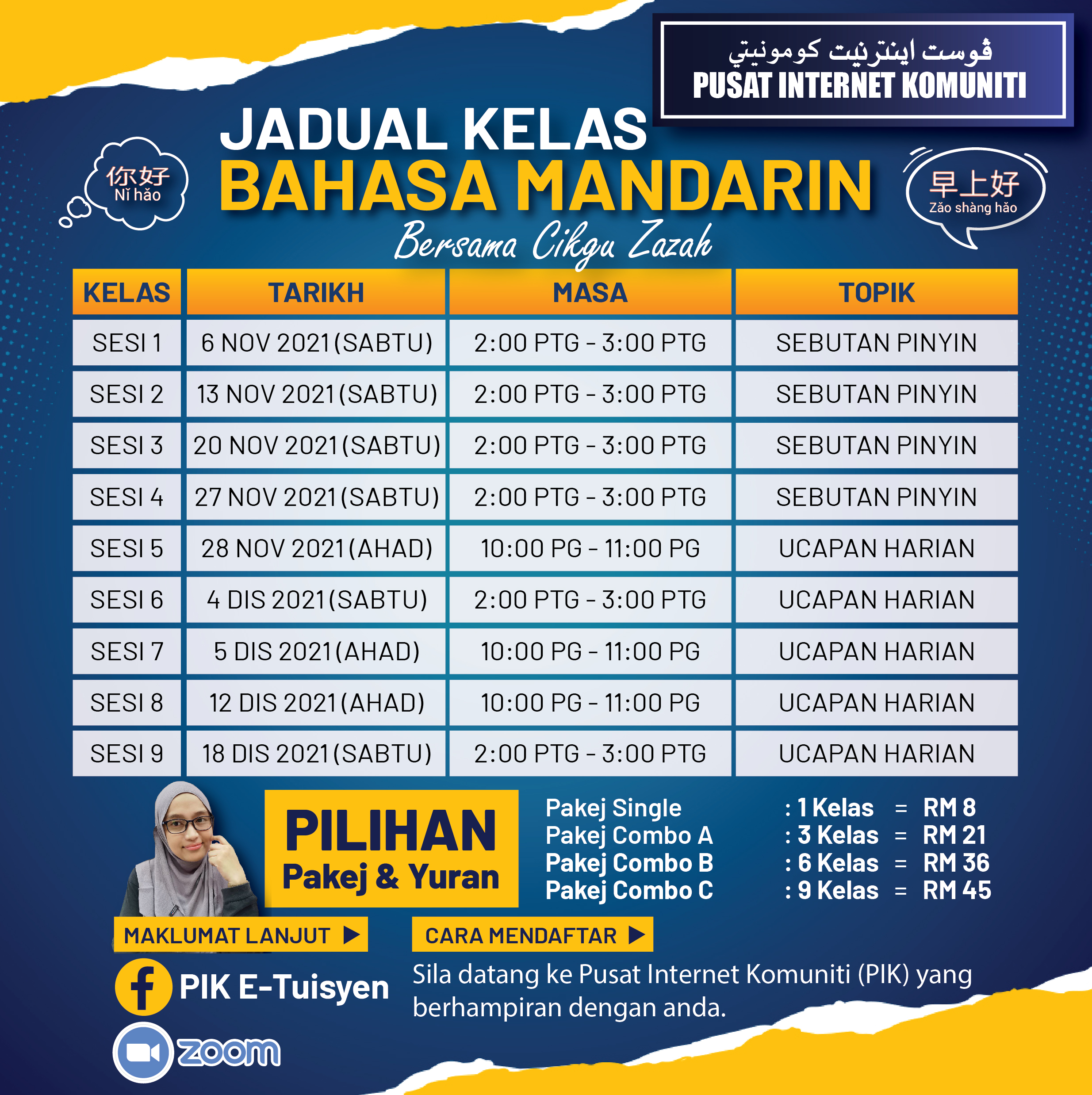 Senarai jadual kelas telah dilampirkan seperti berikut, untuk sebarang pendaftaran dan pertanyaan boleh berhubung dengan petugas PIK: