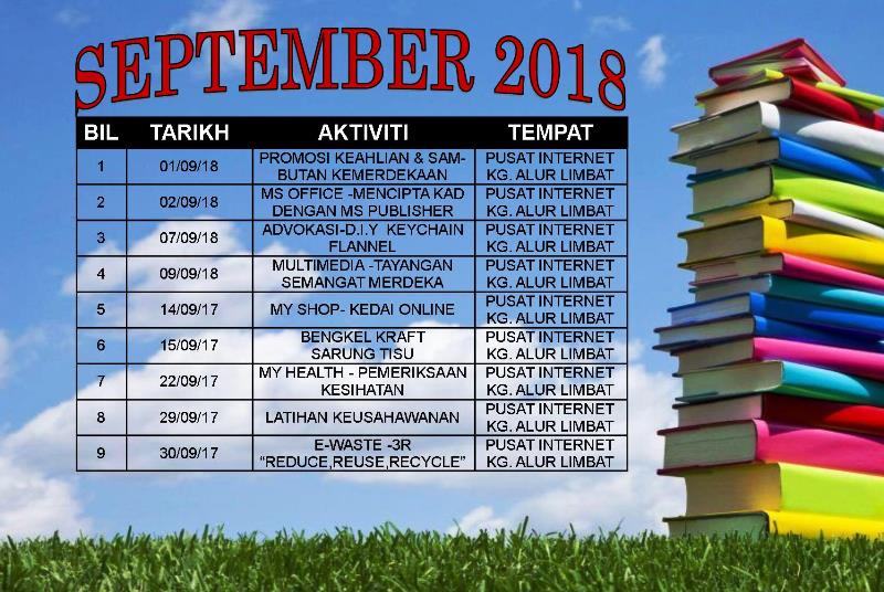 TARIKH : 14 OGOS 2018 MASA : 10.00 PAGI – 1.00 TENGAHARI LOKASI : PI KG. ALUR LIMBAT KATEGORI : PELAJAR SEKOLAH TUJUAN Membuat aktiviti D.I.Y mencipta dan mewarna kad hari jadi bersama pelajar sekolah AKTIVITI Dalam aktiviti ini, […]
