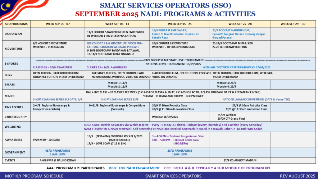 TAKWIM PERKHIDMATAN PINTAR NADI SEPT 2025